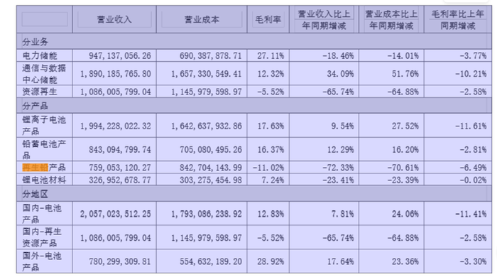 拆解财报数据,南齐电源事迹下滑的中枢来自于政策调养的阵痛。半年报明确透露:“营业收入下落主要原因为公司政策转型,回收板块业务主动减少所致。”